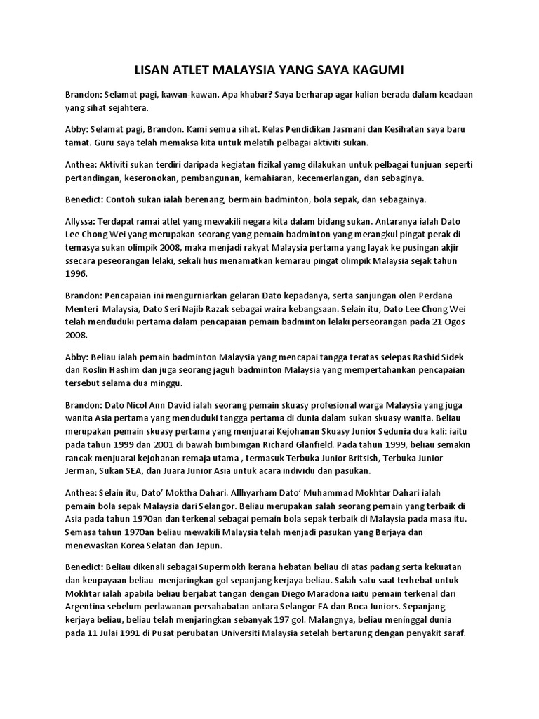 Lisan Atlet Malaysia Yang Saya Kagumi Pdf